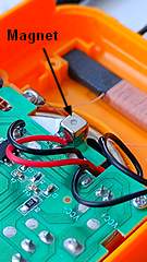 Um die Modifikation schaltbar zu gestalten reicht eine Überbrückung des Widerstandes per Schalter, wodurch der ursprüngliche Zustand der Mikrometerabstimmung wiederhergestellt ist. Dieser Schalter kann auf verschiedene Arten realisiert werden. Im vorliegenden Fall kommt eine magnetische Lösung zum Einsatz, die keine mechanischen Änderungen am Gehäuse selber erfordert. Ein Magnet schaltet einen Reed-Kontakt über Annäherung.