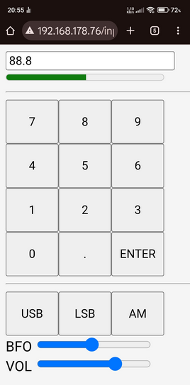 Numerische Eingabe WiFi: Per Touch oder Keyboard, PC oder Phone: Diese einfache Oberfläche im Browser steuert das komplette Radio in FM/AM/SSB ganz ohne Kabelverbindung auch von verschiedenen Geräten gleichzeitig...